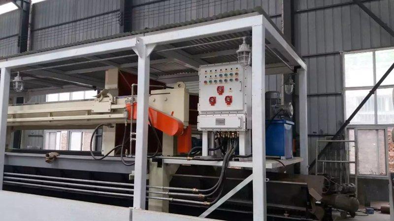 压滤机的滤板是可移动的,通过油缸活塞杆的推动,压滤机滤板逐一靠紧排列。油缸压紧压力由液压系统提供和控制,在掉压时可自动补压(称为自动保压压滤机),保证油缸的压紧力。油缸压紧力是压滤机重要的参数指标,足够的压紧力是保证不漏料、不喷浆的前提,是压滤机脱水性能的基础。